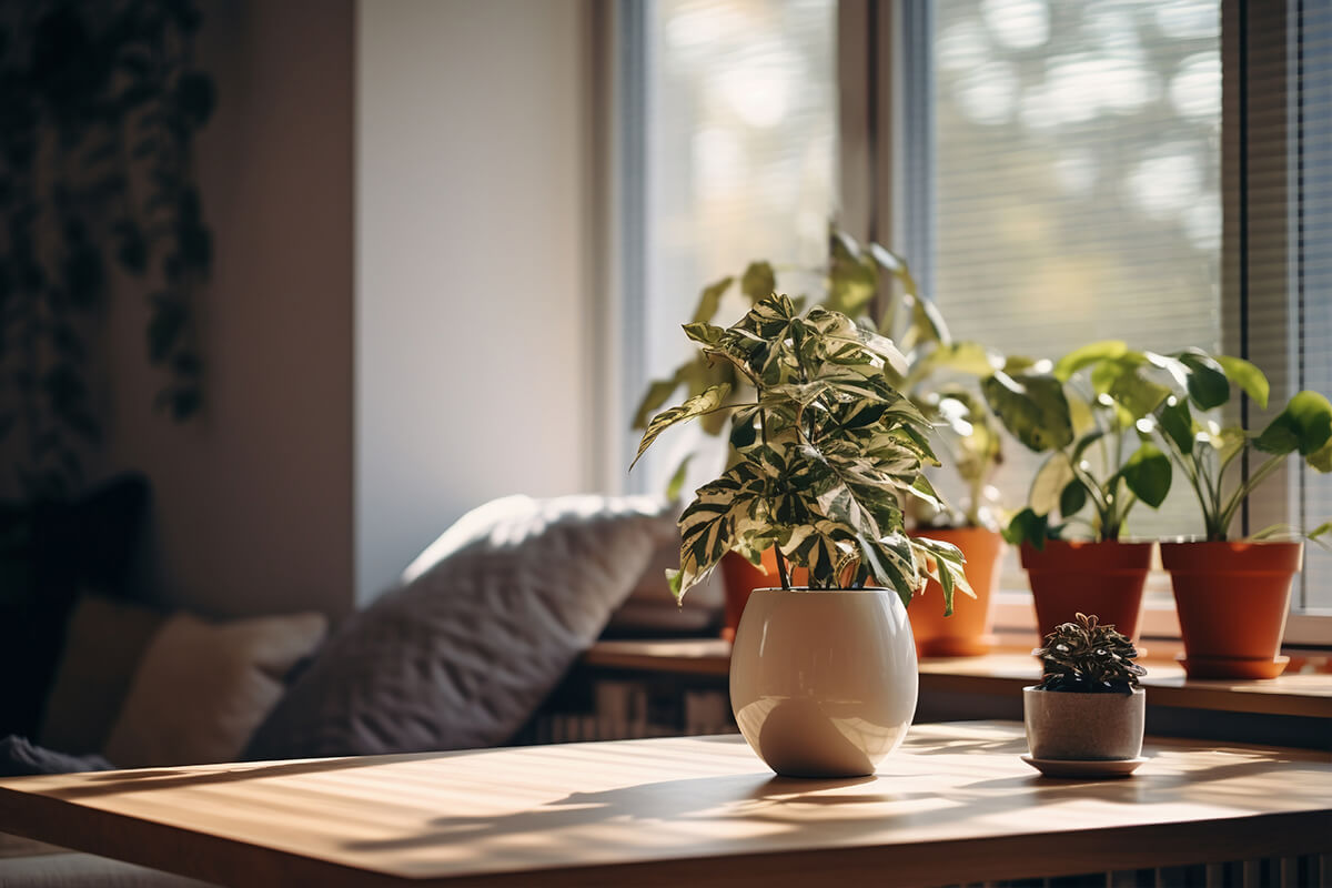 - A few feet from a south or west-facing window: Sun here tends to be hotter and stronger. Place the plant back a couple of feet, or use a sheer curtain to filter the light.